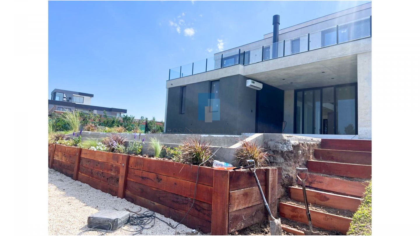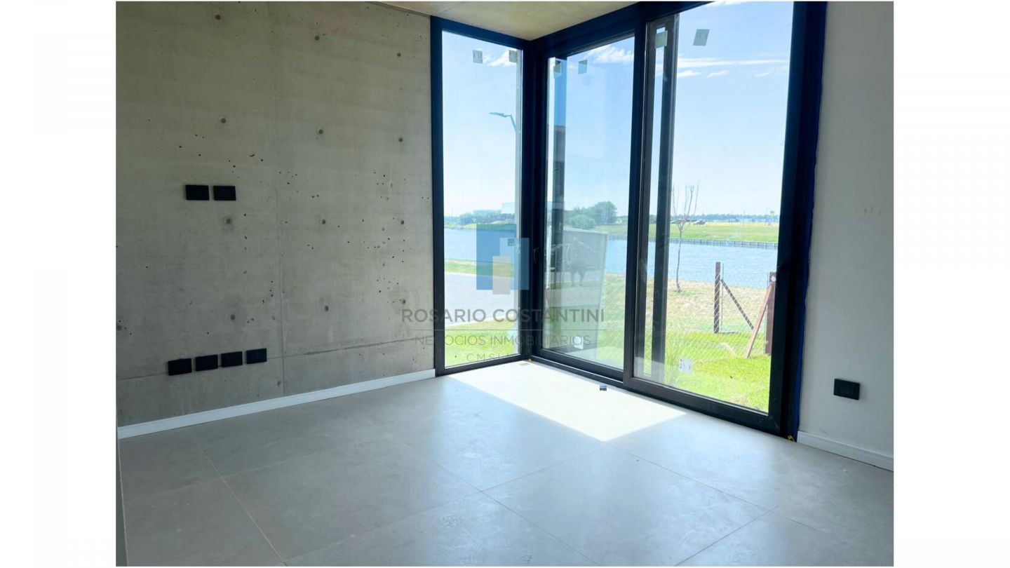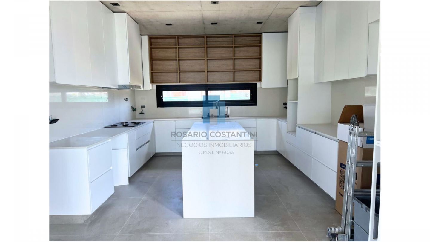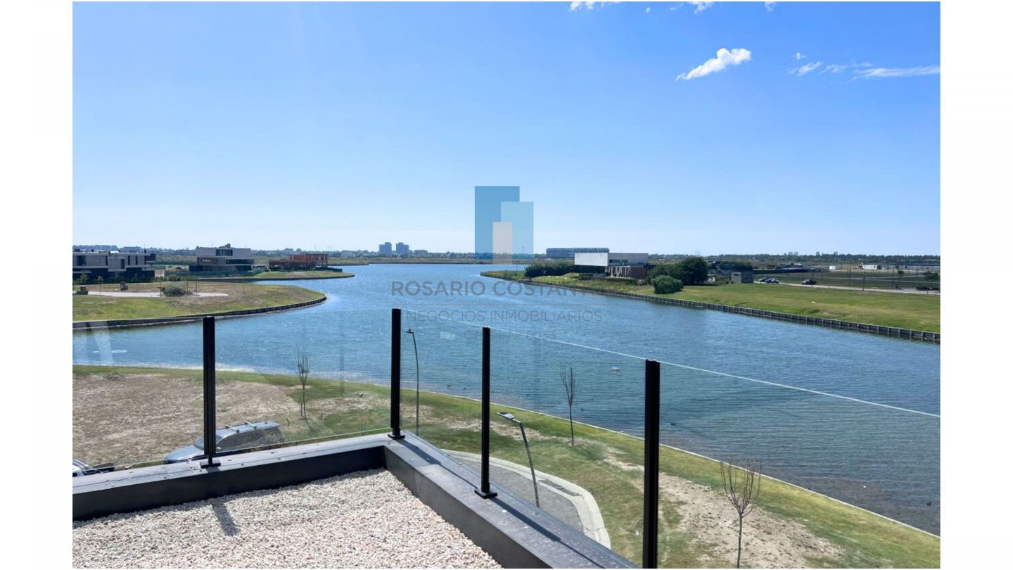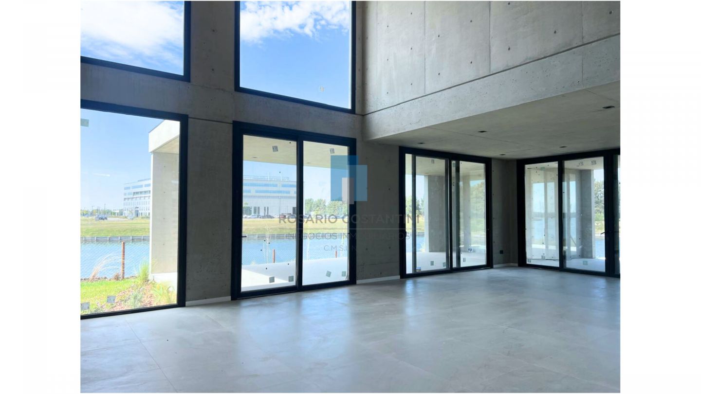 En planta baja hall de entrada, amplio living-comedor súper luminoso con vista al lago y techo en doble altura en el living, lo que le da muchisima amplitud. Escritorio/ Playroom, toilette con ducha. Cocina semi integrada con isla, mucha mesada, y espacio de guardado. Lavadero, y dependencia con baño.
