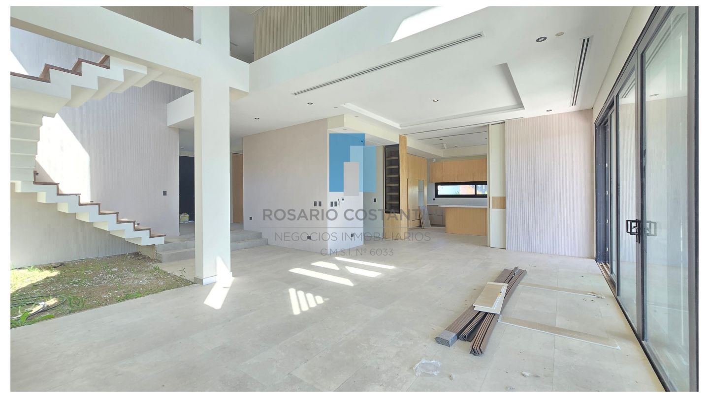 Detalles de construcción: piso radiante, aire central sectorizado VRV BGH y DAIKIN en habitaciones junior; aberturas DVH de PVC alemanas marca Rehau, griferia FV, detalles en cielo raso, mosquiteros, muebles laqueados, exterior tarquini y detalles wpc simil madera, interiores de placards en madera, pisos de porcelanato y revestimientos de calidad y mesadas silestone en baños, cocina con mesada de piedra sinterisada tipo Dekton, mamparas, artefactos de cocina Ariston y bacha inteligente. Puertas de 2.6mts de altura, bañera excenta marca Corian. Preparada con instalaciones para domotica, riego automatico.