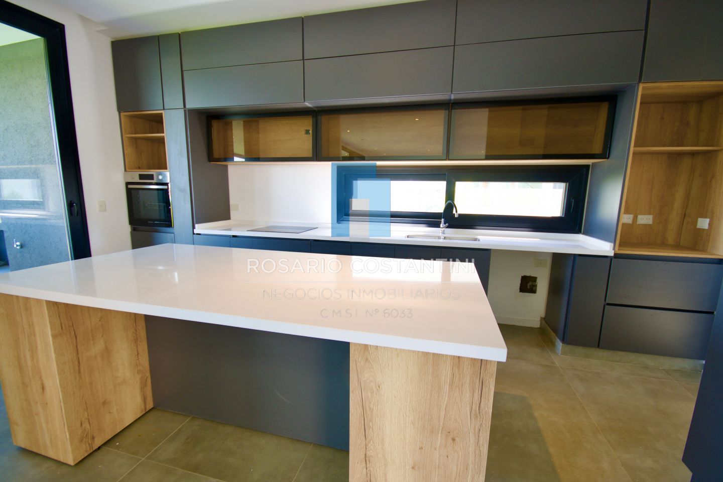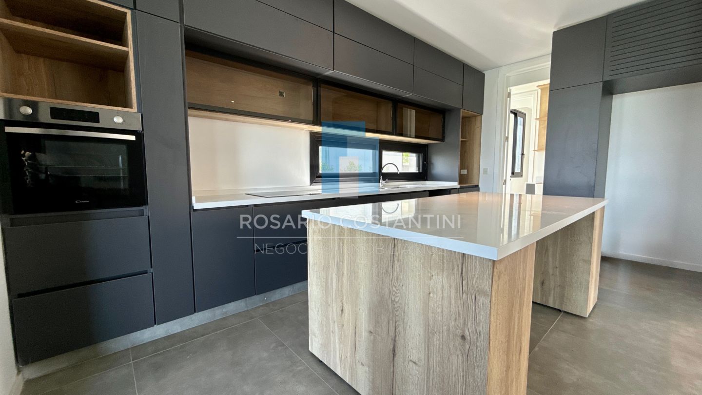 Lindisimo hall de entrada. Gran escritorio (ideal home office o playroom). Living-comedor con salida a galería, super amplio con grandes ventales que dan al lago. Cocina integrada, que podria cerrarse con una puerta corrediza si se quisiera. Lavadero, despensa y dependencia de gran tamaño. Galería super ampla con parrilla.
