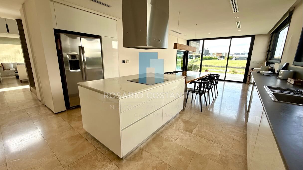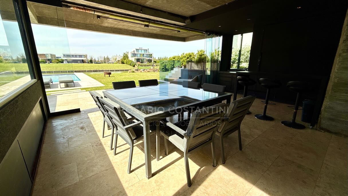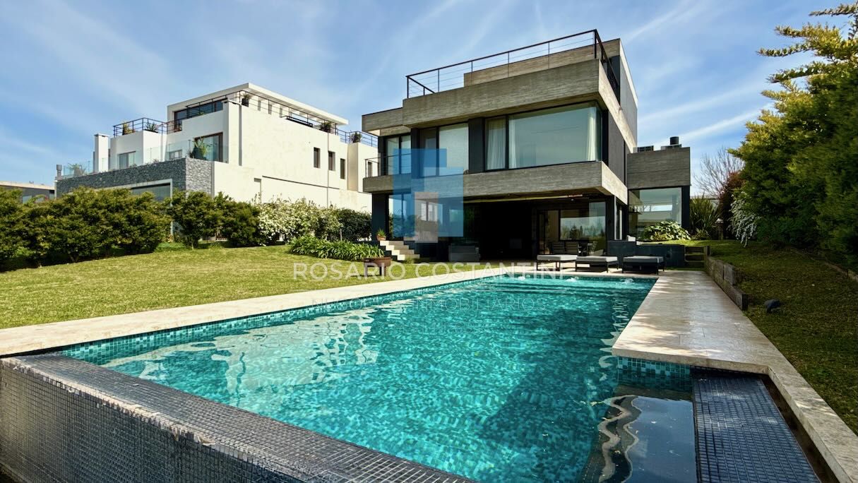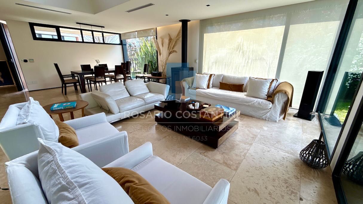 Se destaca por la calidad de los materiales constructivos y sus terminaciones. Una casa construida para ser vivida por sus propios y únicos dueños al dia de hoy. Con Domotica control4 (ofrece un sistema de hogar inteligente personalizable y unificado para automatizar y controlar dispositivos conectados, como iluminación, audio, vídeo, climatización, intercomunicación y seguridad). Aire Acondicionado VRV DAIKIN (sistema de climatización centralizado que controla el flujo de refrigerante de forma individual en cada zona o habitación para optimizar el confort y la eficiencia energética. Esta tecnología permite un control de temperatura independiente, reduce el consumo de energía y ofrece una operación silenciosa, adaptándose a las necesidades específicas de cada espacio )Todas las griferías de la marca Premium Alemana Hansgrohe. Cortinas black out motorizadas. Implementacion de Paneles Solares para ahorro de energía. Horno Tromen. Desarrollada en 3 plantas con Hormigon en textura de tableado a la vista. Las plantas balconean hacia frente y contrafrente lo cual le da espacialidad y vistas hacia amaneceres y atardeceres. Pileta 10 x 4 .