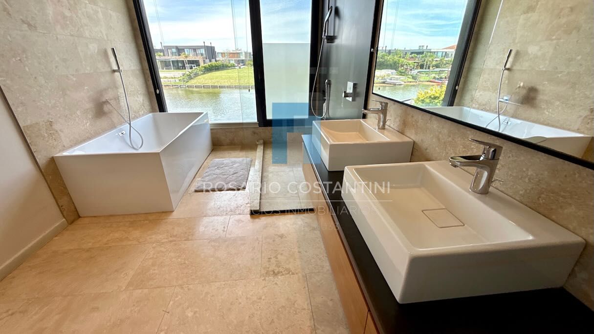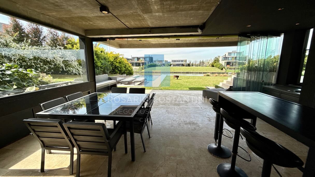 PB: Living comedor, cocina con family, despensa, toliette, galería de 7x,7 con parrilla con horno Tromen a gas y baño de pileta completo. Dependencia de servicio, lavadero con tender. ENTREPISO Area de la suite con vestidor y baño. PRIMER PISO : Otros 3 dormitorios. Una Junior suite con baño y vestidor y una mega terraza y otros 2 dormitorios, cada uno con su propio balcón terraza, con baño completo tripartimentado: ante baño con placard mesada y bacha. SEGUNDO PISO: SUM con dos Terrazas, una al frente y otra enorme al lago.