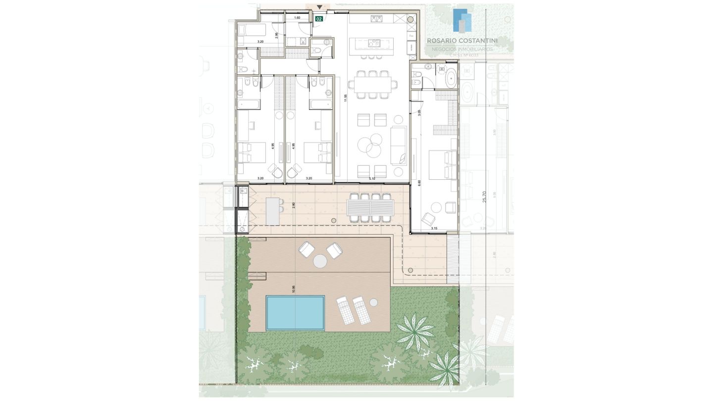 Ambos volúmenes poseen aproximadamente 100 metros de frente al agua. Entre ellos, se ubica un sector de pileta y solárium, que funciona como espacio central del proyecto.