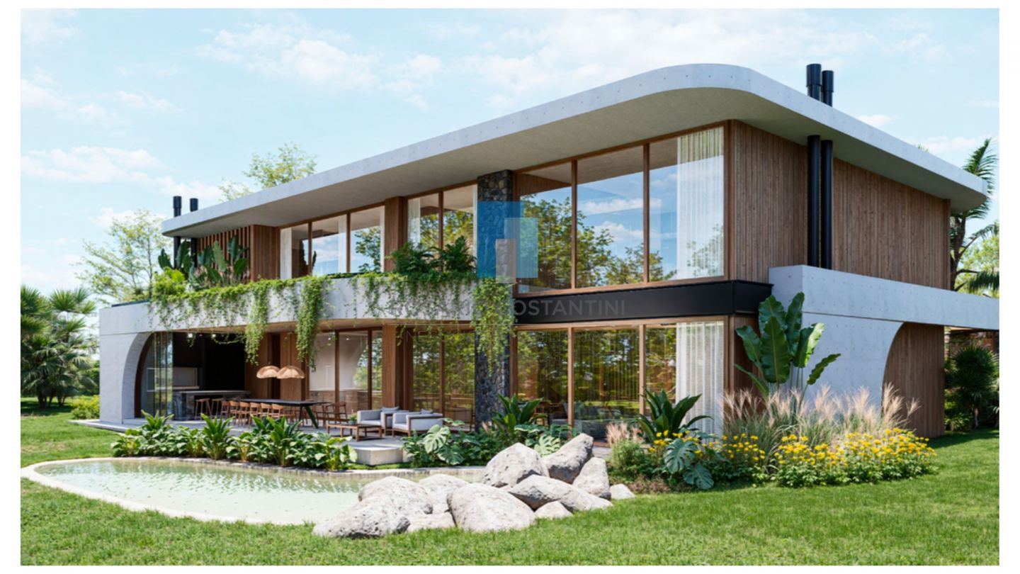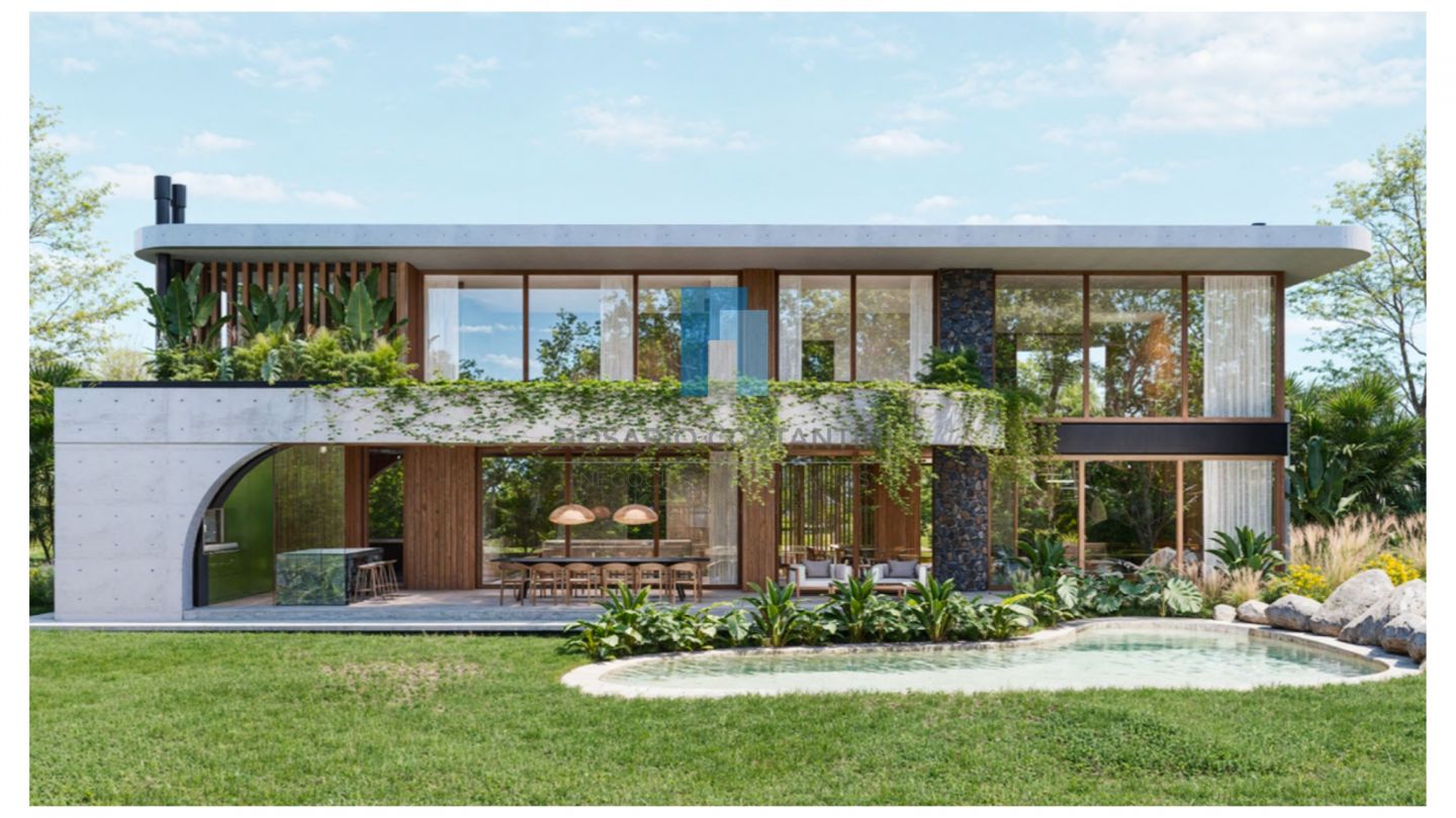 Desarrollada en dos plantas, se destaca por su diseño moderno y curvas, con una exquisita combinación de hormigón visto, revestimientos WPC Lifecycle, piedra y mármol travertino de la mano de espacios pensados para poder vivirla disfrutando cada rincón gracias a su funcionalidad.
