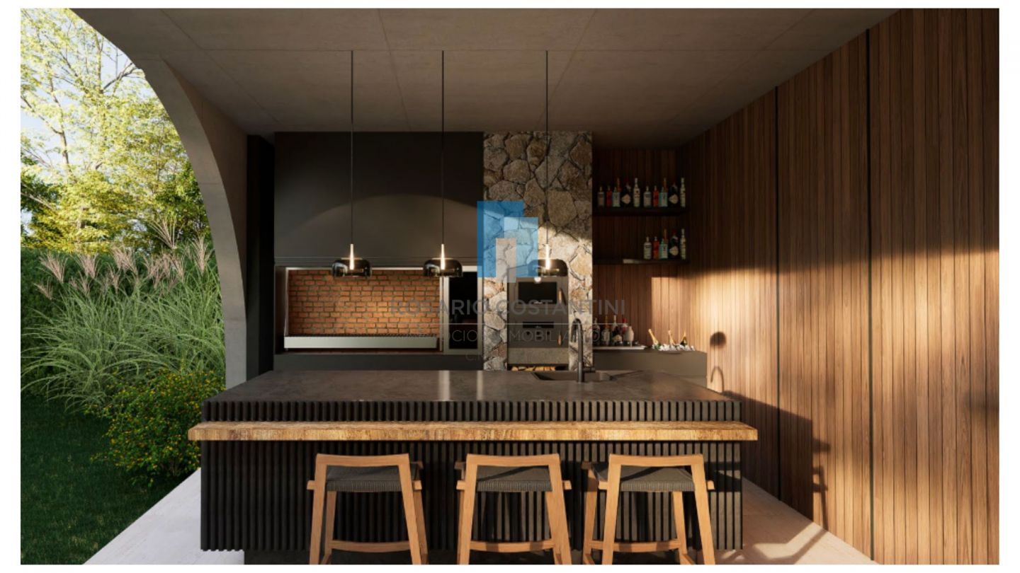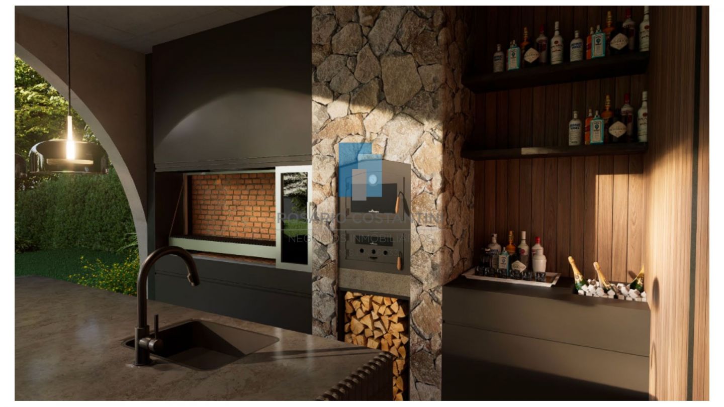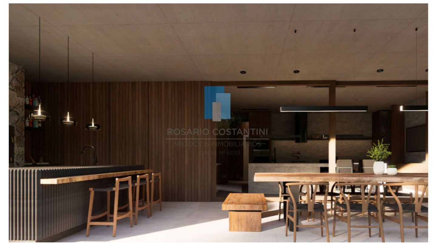 Galería semicubierta con mesada y gran parrilla para disfrutar del entorno. Pileta de 9 x 4 revestida en mármol travertino o similar con borde infinito en una de sus caras y solárium. Jardín con riego por aspersión, grama bahiana, incluye paisajismo y muelle.